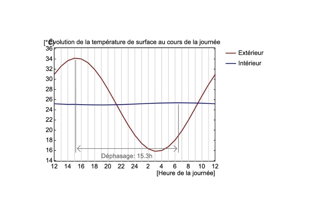 C’est une histoire de comportement des matériaux dans le temps. Pour avoir un ordre d’idée, un bon isolant doit offrir environ 12h de déphasage.